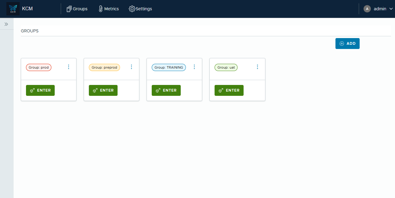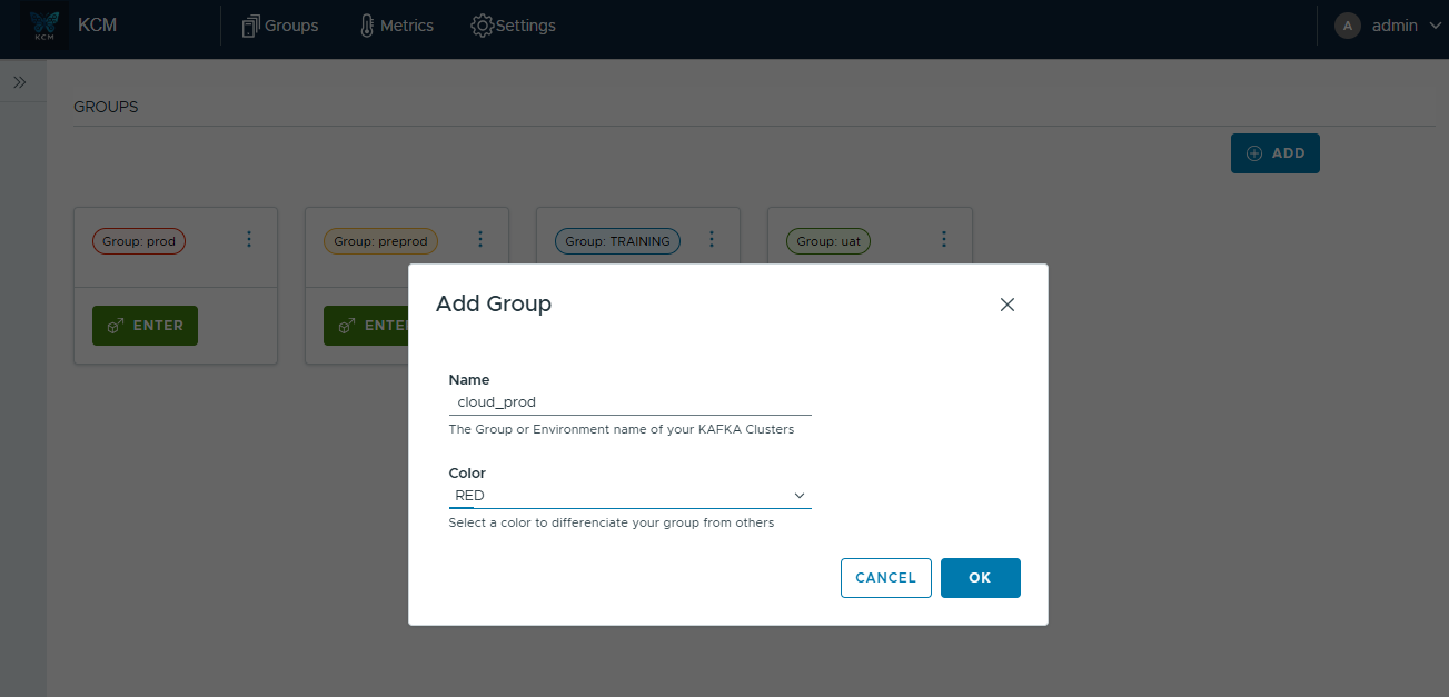 KCM lets you organize environments or sets of Kafka clusters into groups. Use them to keep production, staging, or regional footprints separated while still working from a single control plane.